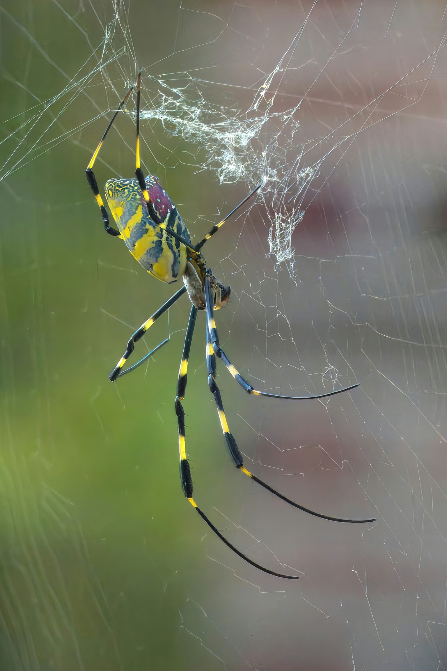In terms of color, the banana spider is most commonly characterized by a vibrant yellow and black pattern. The body is elongated and the cephalothorax, or the front part of the body, often displays a yellowish hue with black markings. The abdomen is typically bright yellow or gold, adorned with striking black spots or stripes that contribute to its distinctive appearance. This coloration not only helps in identification but also serves as camouflage among foliage, aiding in its survival against predators.